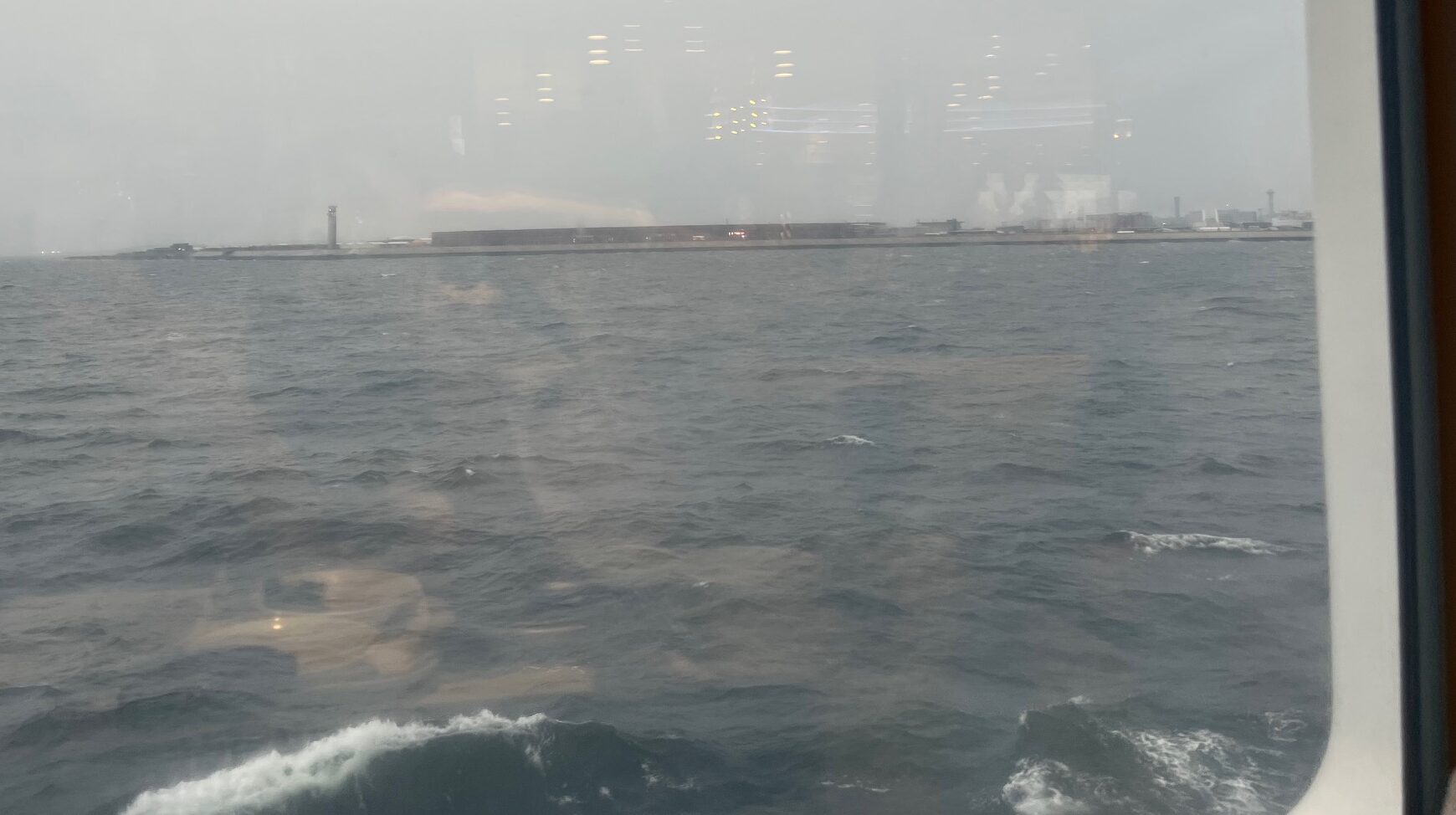 (後日、2025大阪・関西万博会場に行くことになるのですが、大屋根リングの全体を見ることができるのは海からだけです。)