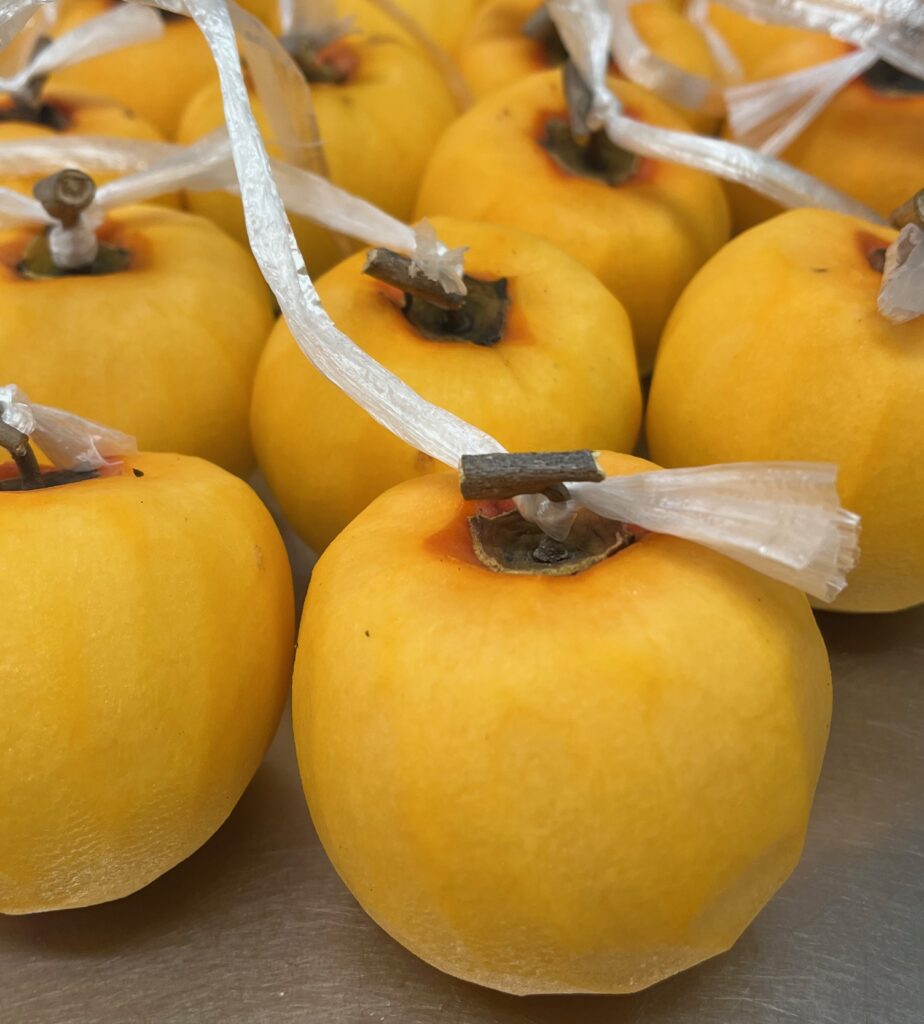 20日くらい干すと中がトロトロの干し柿、40日くらい干すと中まで乾燥した干し柿になってきます。