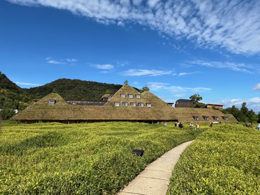 中に入ると、広い敷地に草屋根の大きな建物。